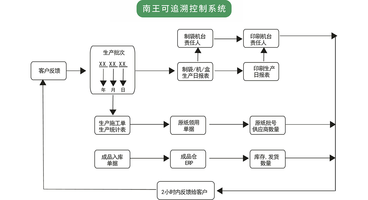通过对批次产品赋予独一无二的追溯号码,实现每一件产品都有唯一的产品号,南王每一批产品的生产过程均拥有了完善的追溯系统,可以对产品的供应商、原材料、生产、仓储、销售、市场巡检及消费者等环节进行数据采集跟踪,并且在24小时内可完成产品追溯,快速响应客户所反馈的问题。